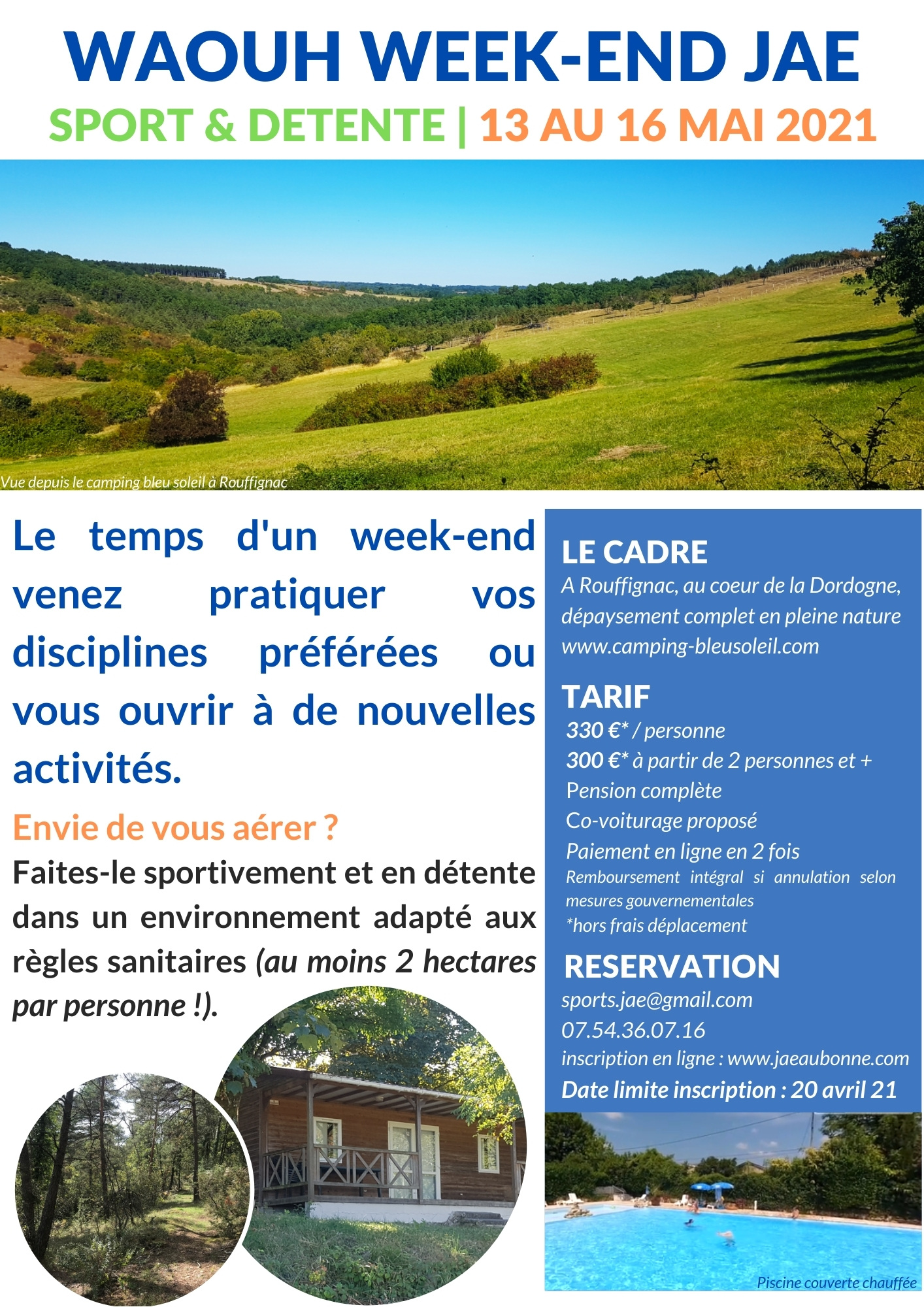 Votre inscription à ce Waouuuh WE avant le 20 avril via ce lien : https://www.payassociation.fr/ja-eaubonne/we-waouh-mai-2021