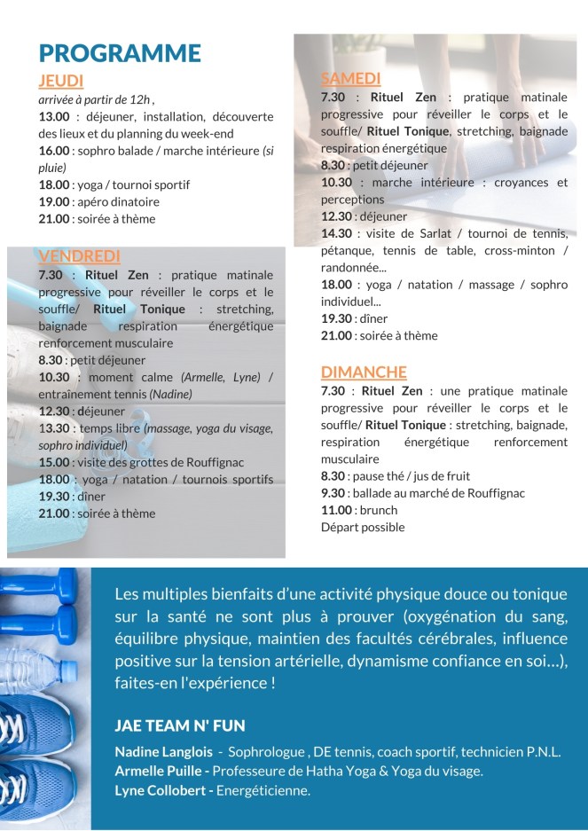 Les activités : vous êtes plutôt relax ? sportif ? ou alors flexi ? ou les trois ? ça tombe bien, les activités prévues sont pour tous !