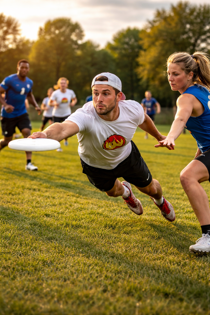 L’ultimate Frisbee, ou Ultimate-Passe, est un sport collectif qui se joue avec un disque volant. Il oppose deux équipes sur un terrain. Le but est de marquer des points en attrapant le disque -de type frisbee- dans la zone d’en-but adverse.