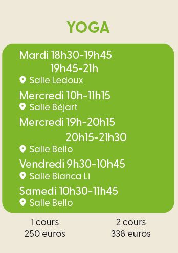 Agnès, Armelle et Justine, nos professeurs certifiés, vous proposent plusieurs séances hebdomadaires, indiquées ci-dessous.